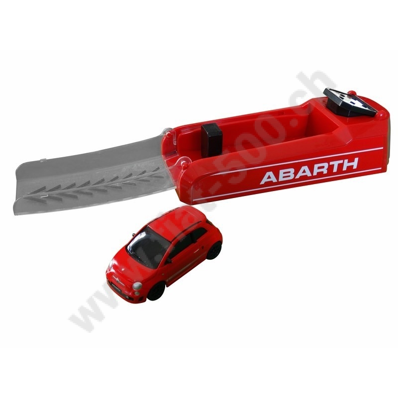Modellauto 1/64 mit Startrampe Fiat 500 Abarth 695 Tributo Ferrari rot